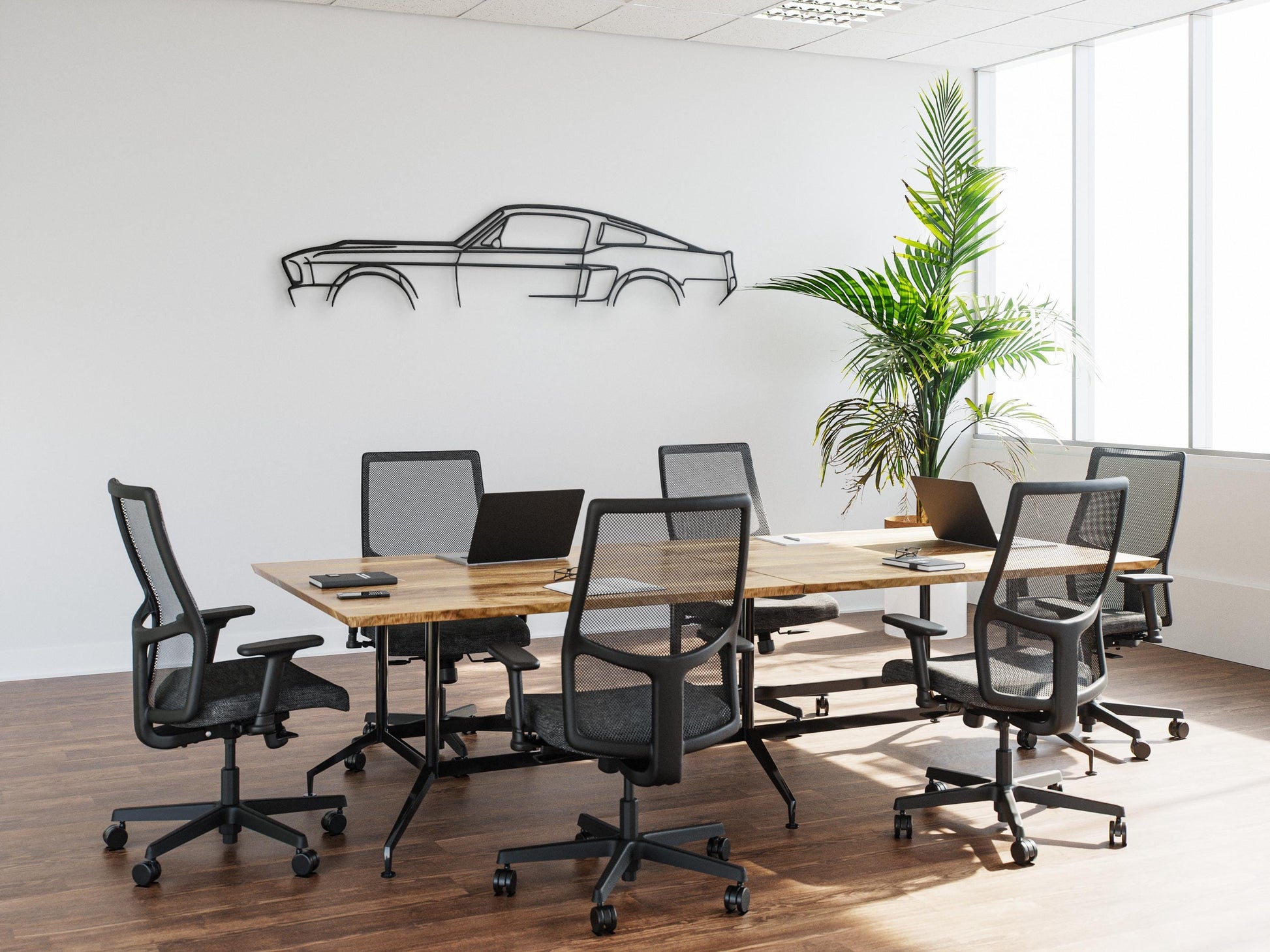 Bring the iconic style of the 1969 Mustang into your space with this stunning metal silhouette wall art. Crafted from 2mm thick steel, it is precisely cut and coated with high-quality powder paint for a durable and sleek finish.